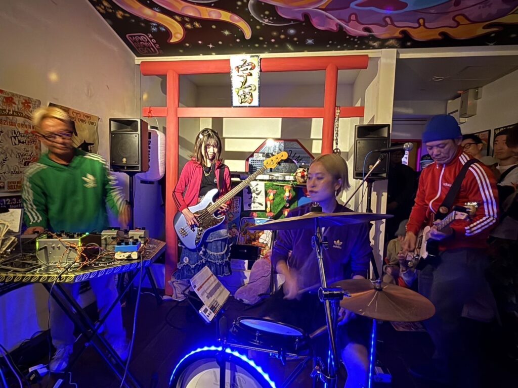 2024年京都にて結成。ギター:Tarow、ベース:うさ、ドラム:紫乃、エフェクター:飛2から成るインストゥルメンタルバンド。2024年西院フェスにてライブデビュー後、京都を中心に自主企画ライブ&DJパーティーなどを開催。年齢も性別も聞いてきた音楽も違う4人が生み出す、ジャンルレスの「踊れる音楽」。パンクかロックか、はたまたレゲエか…?どれでも良いからあなたと一緒に気持ちよく踊りたいのです。