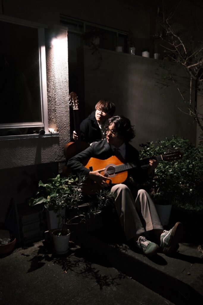 2024年結成、京都発のユニット。ともに2004年生まれである。同じ郷里であるからか、どちらも筆と足が遅くのらくらと製作を続ける日々。しかし今夏に入りその一筆、一歩が段々と大きくなっていく。もう以前の私たちにはお別れしよう。そんな事をぷかぷか想っている内にまた夏が越していきそうだ。